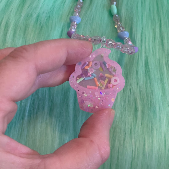 Kawaii Pink Cupcake Shaker Necklace